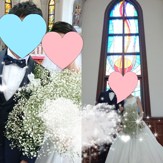 こちらのカップルは教会で挙式したお写真を送ってくれました〜╰(*´︶`*)╯♡