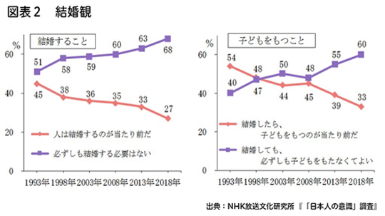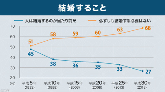 2018年 必ずしも結婚する必要なない 68%→133%のアップ
