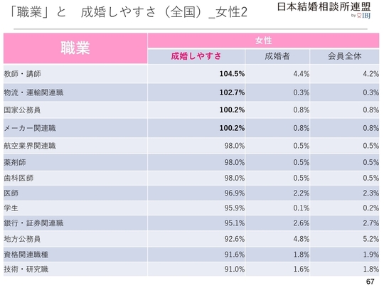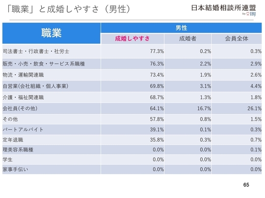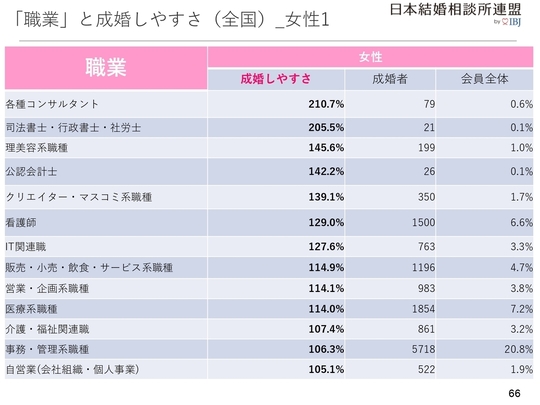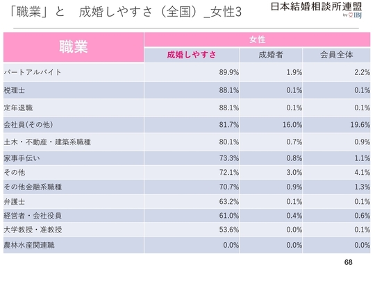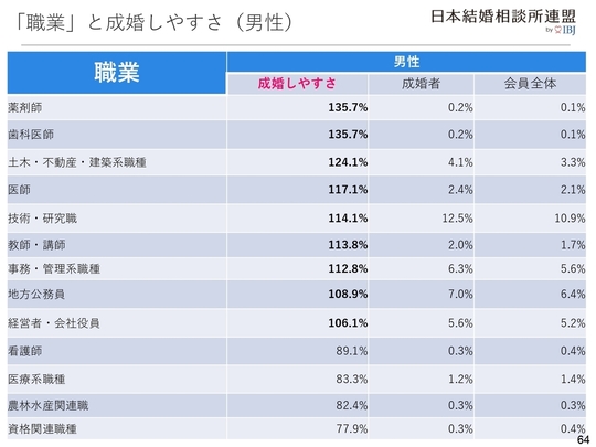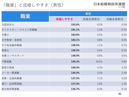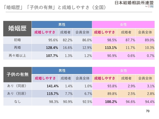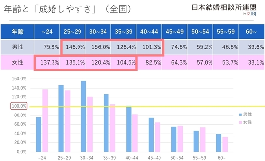 成婚のしやすさとは、活動者数の割合と成婚者数の割合で計算