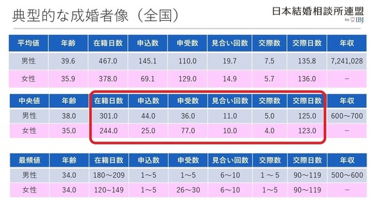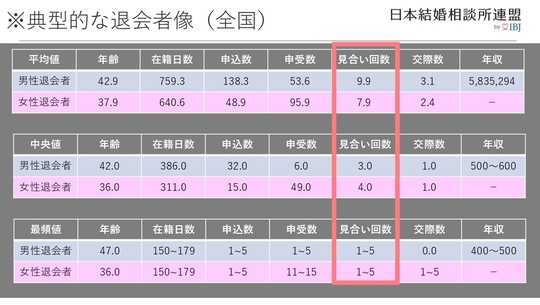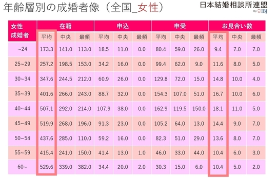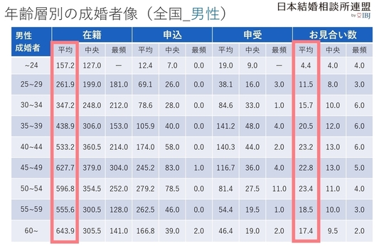 傾向として、年齢を重ねるにつれ、在籍期間も長くなるし、お見合い回数も多くなる。