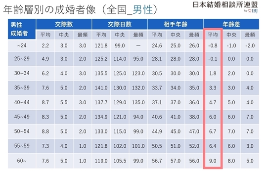 また、若い世代ほどお相手(女性)との年齢差は少ない。