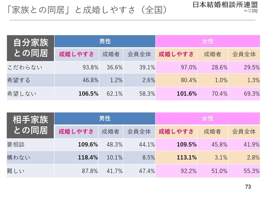 ・相手家族との同居では、【要相談】【構わない】が支持されております。