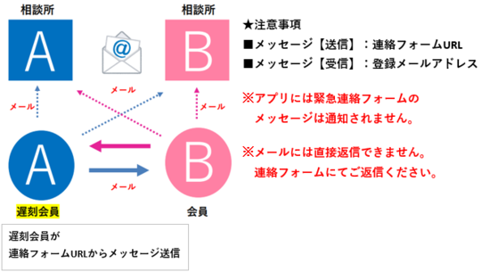 ※ どちらの相談所にもメールが届きますが、当人同士でこちらのツールを使い、解決出来ます。