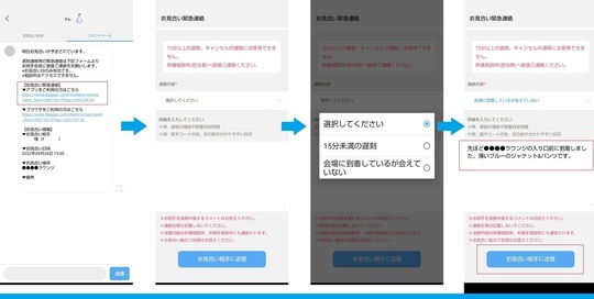 A:お見合い当日緊急連絡機能はアプリ・WEBどちらで活動されていても使用できます。 当日フォームのURLへアクセスしていただければ、緊急の連絡を送信することができます。