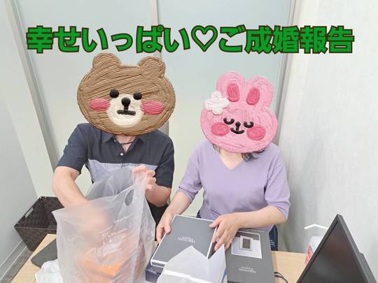 今日は、45歳女性会員様のご成婚報告!お相手様相談所にて一緒にお祝い♡
