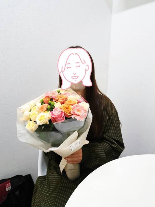 写真は顔出しNGですが、花束を持って微笑んでいるAさん、自然体の幸せがそのまま伝わってきました。